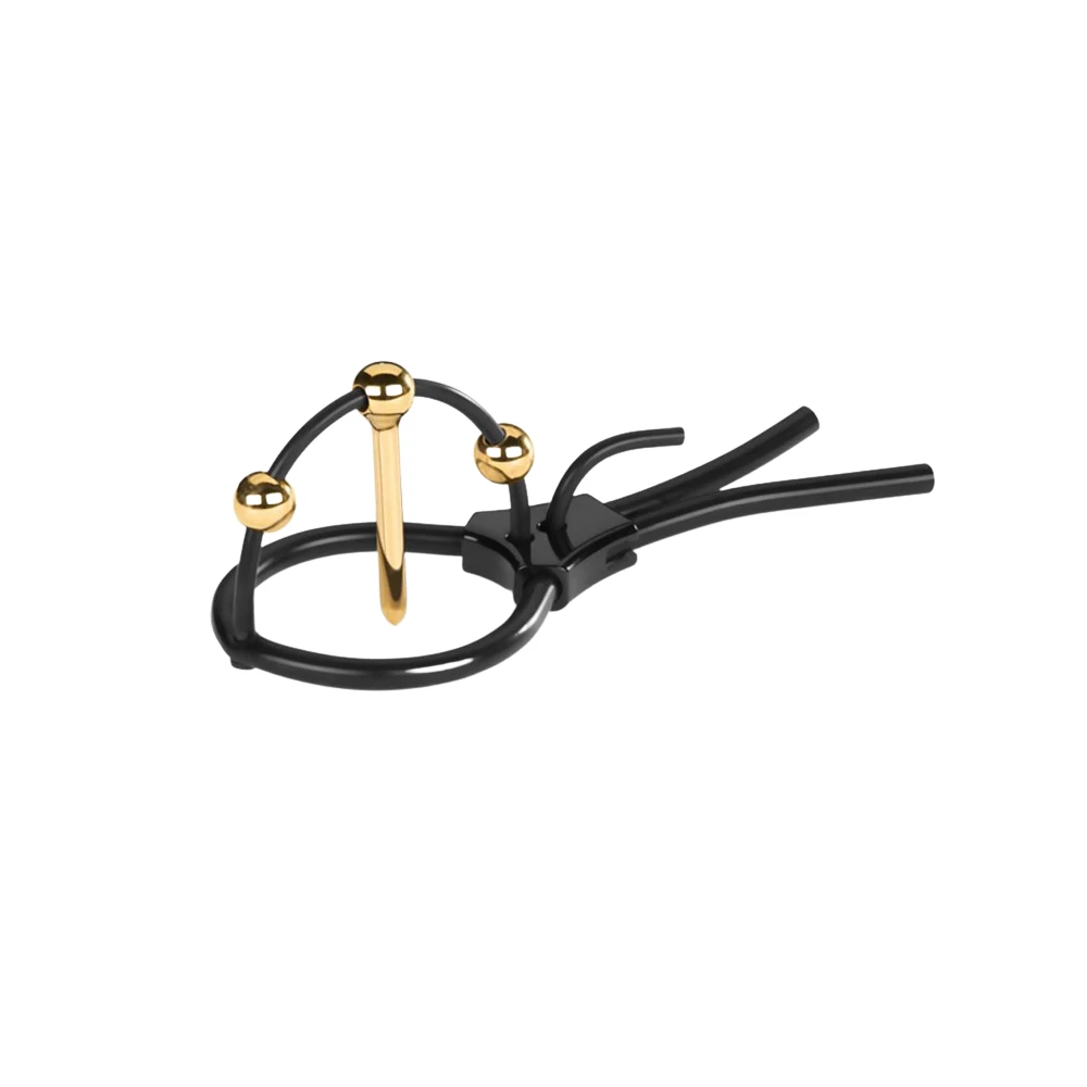 Inel pentru penis cu design inovator, confectionat din silicon fin si placut la atingere. Este prevazut cu dilatator pentru uretra si 2 bile, ambele placate cu aur de 24k, ceea ce ofera un look sofisticat si rafinat intregului ansamblu. Astfel, inelul ofera o stimulare intensa atat la exterior cat si la interior.