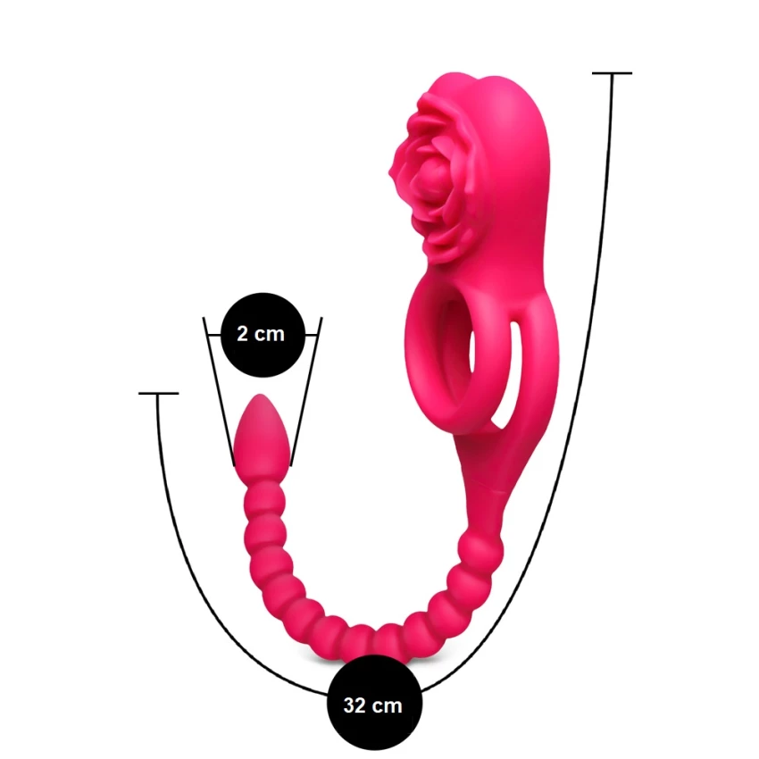 De asemenea, in partea superioara, inelul are aspectul unui trandafir suav si elegant, ideal pentru stimularea clitorisului partenerei. Acest ansamblu completeaza un aspect extrem de elegant si sofisticat, facand produsul potrivit pentru un cadou special catre o persoana apropiata din viata dumneavoastra.