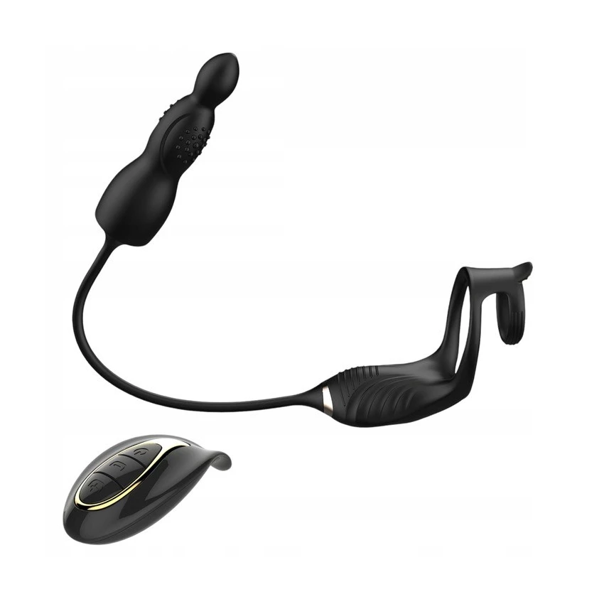 Inel cu vibratii si vibrator anal cu forma progresiva, realizat din material extrem de fin si placut la atingere, intr-o culoare clasica dar totodata eleganta de negru. Produsul este creat pentru cuplurile care vor sa aduca un plus de noutate in cadrul vietii lor intime, fiind un articol complex si versatil, cu multiple variante de a fi folosit.