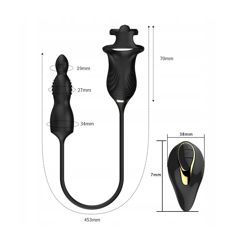 Jucaria dispune de 10 trepte de vibratie care se actioneaza din telecomanda wireless cu care produsul vine la pachet. Vibratiile stimuleaza ambii parteneri si asigura o experienta incitanta in timpul actului sexual. Telecomanda are o forma ergonomica si un aspect sofisticat dat de insertia lucioasa de auriu care evidentiaza butoanele de reglaj al functiilor.