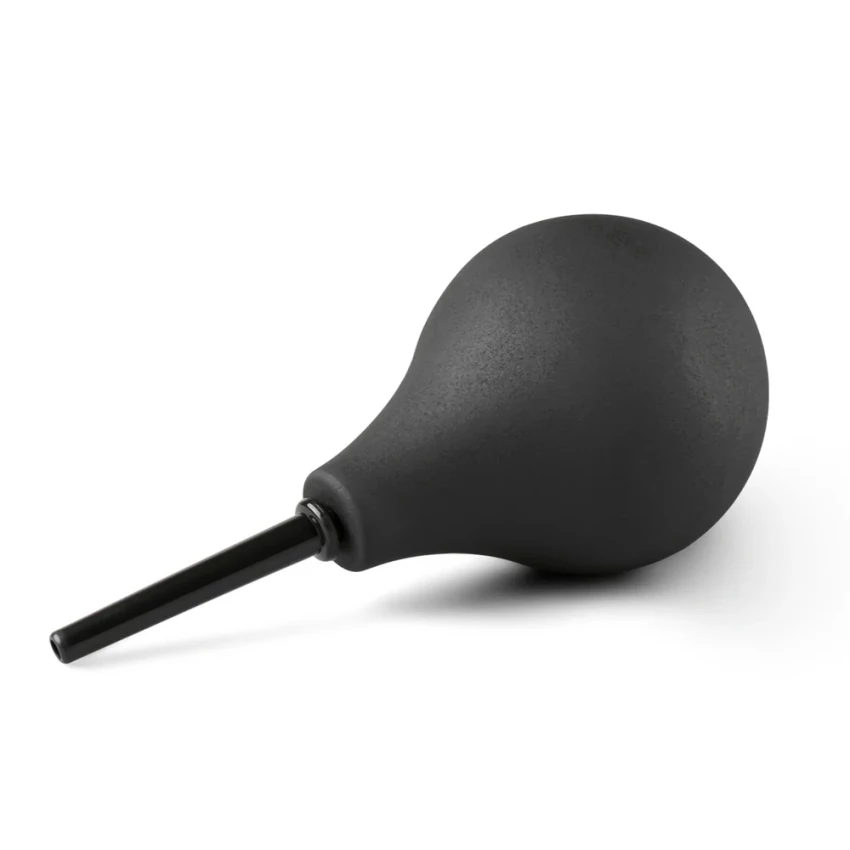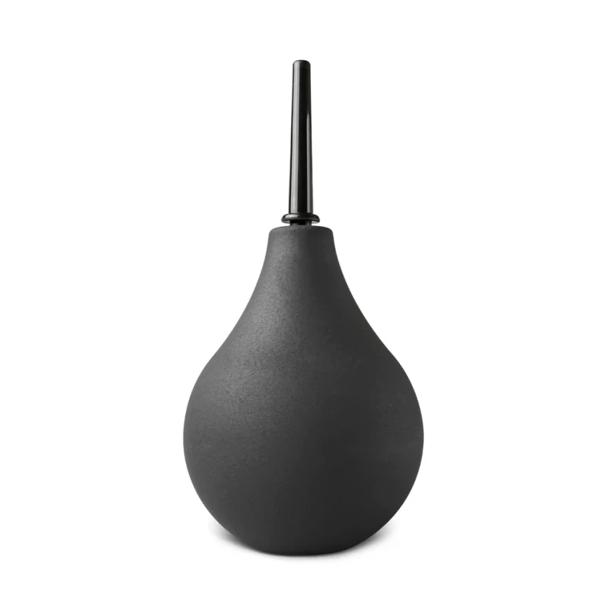 Irigator anal din cauciuc negru, usor de utilizat, datorita recipientului in forma de pompita.