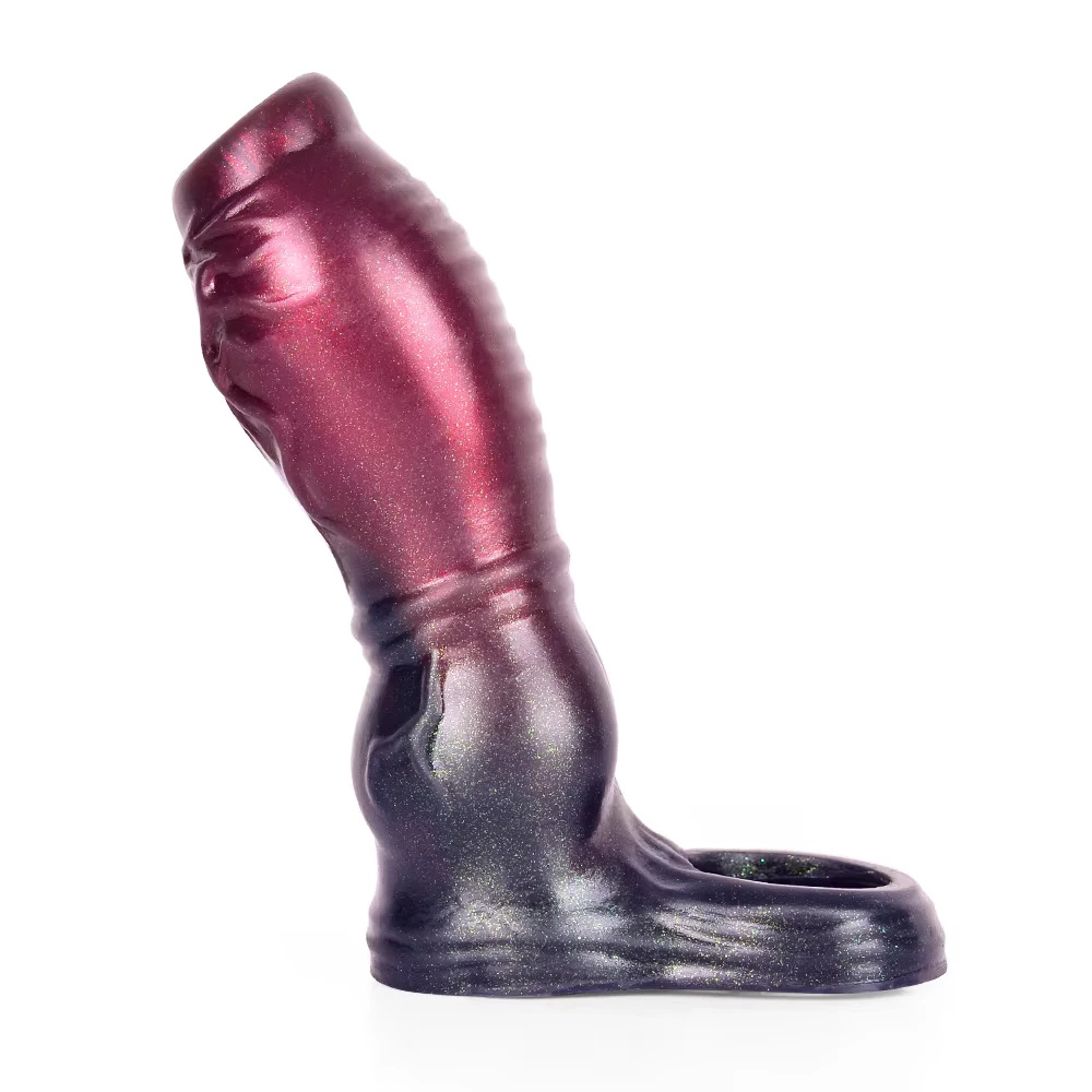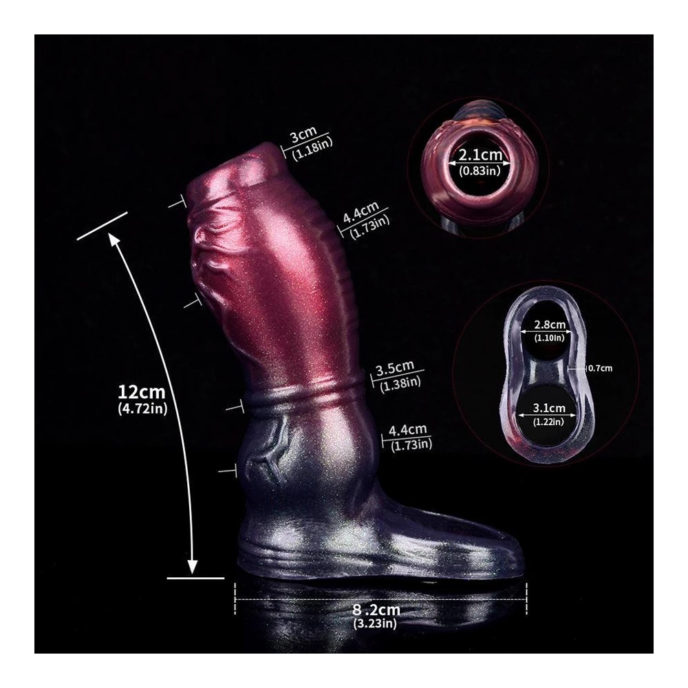 Manson cu design fantasy din silicon, prevazut cu inel pentru testicule ce il ajuta la fixare, deschis in varf astfel ca poate fi adaptat oricarei dimensiuni. Este prevazut cu striatii pentru o stimulare intensa a partenerei.