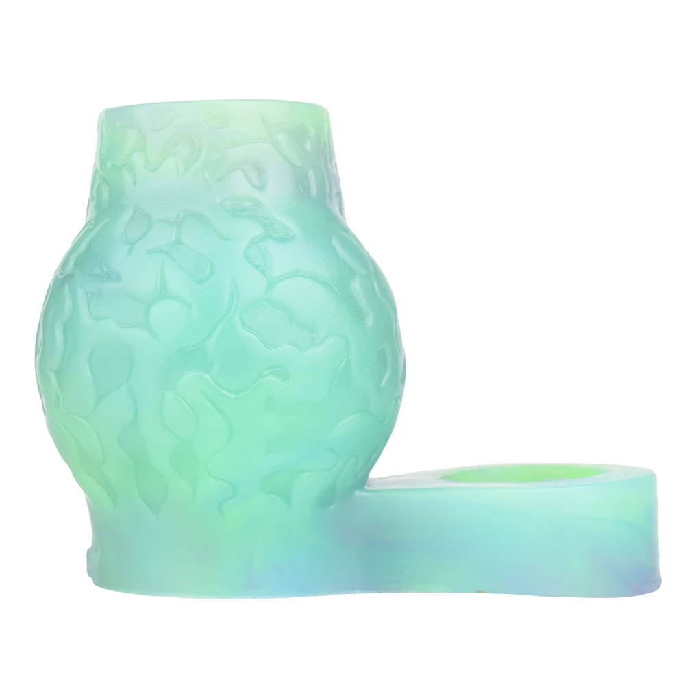 Manson pentru penis cu design fantasy si culori captivante, prevazut cu inel pentru testicule ce il ajuta la fixare. Pentru un plus de stimulare dispune de suprafata exterioara texturata.