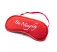 Masca pentru ochi de culoare rosie, cu text inscriptionat.