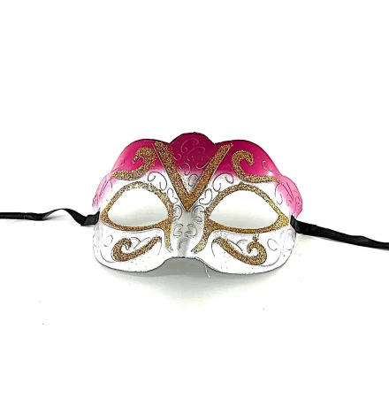 Royal Muse Rose nu este o simpla masca venetiana, ci o declaratie de rafinament si eleganta, fiind un articol sofisticat potrivit in numeroase circumstante si ocazii. Nuantele de roz jucaus, alb imaculat si insertiile de auriu ale mastii ofera un aspect asortat, foarte atractiv si special.