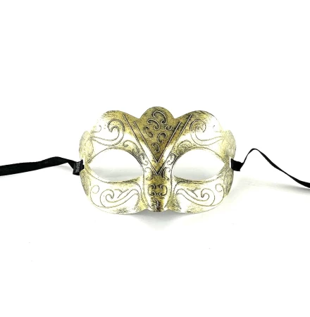 Masca venetiana Vintage Story este o masca aurie cu snur negru satinat, perfecta pentru oricine doreste sa se evidentieze si sa isi dobandeasca o imagine de persoana unica si memorabila. Este potrivita pentru orice fel de personalitate, fie ea mai rezervata, fie ea mai indrazneata, fiind un articol care iese foarte usor in evidenta.
