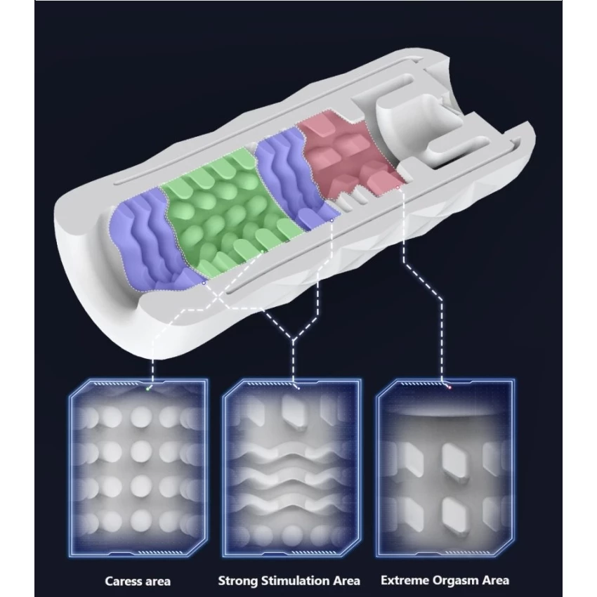mansonul interior este foarte moale si elastic cu texturi interne foarte bine alese,motorul este foarte puternic si miscarile se simt foarte placut, merita toti banii. Recomand este un masturbator de calitate care se simte real
