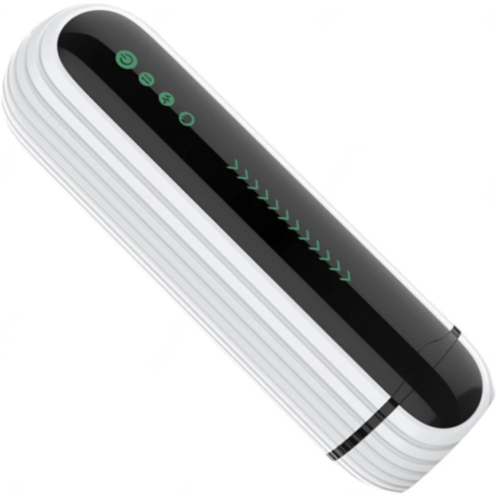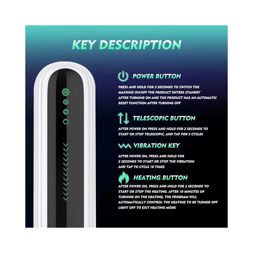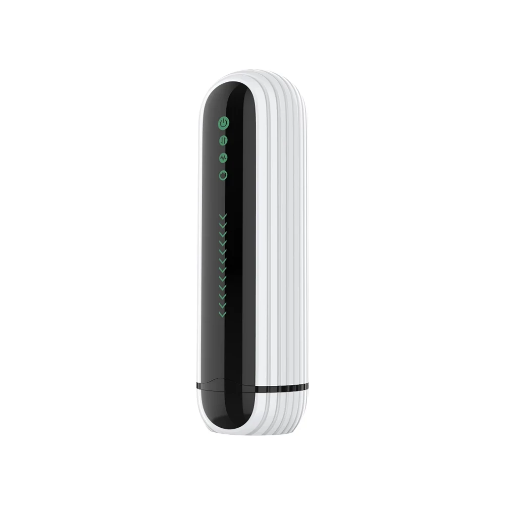 Este dotat cu un motor puternic care furnizeaza 10 moduri de vibrare si 4 moduri de stimulare prin miscari de impingere. In plus, dispune de functie "heating" care poate incalzi mansonul pana la 40°C. Acestea se controleaza rapid glisand cu degetele pe ecranul tactil din consola centrala.