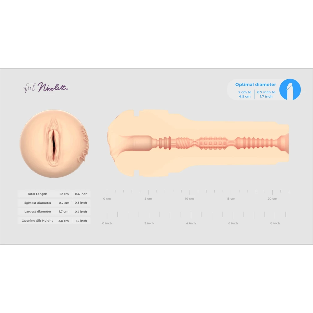 Masturbator cu forma compacta si manson care imita vaginul starului din filmele pentru adulti Nicolette Shea. Este prevazut cu o carcasa ergonomica pentru o utilizare facila si o depozitare discreta.