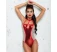 Body din tul alb cu insertii frontale din material rosu cu aspect lucios. Are sistem de prindere dupa gat, lasand spatele gol. Zona decolteului este frumos accesorizata cu trei benzi inguste, decorate cu inele aurii.