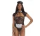 Set lenjerie erotica, format din sutien si slip, din material lucios ce imita pielea. Sunt decupate frontal, fiind prevazute cu snur subtire incrucisat. Slipul este minuscul, tip tanga, iar sutienul lasa sanii la vedere.