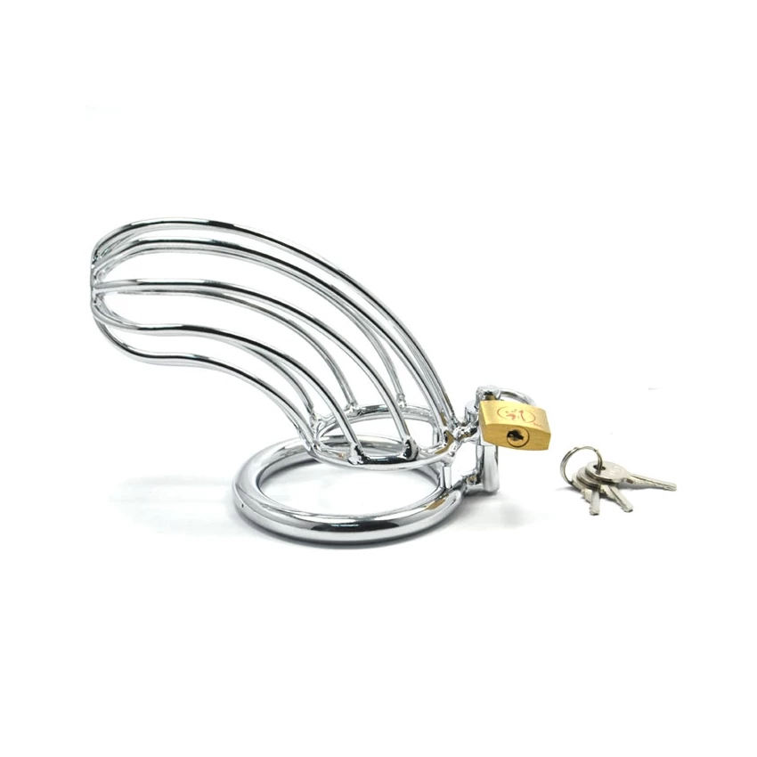 Centura de castitate pentru barbati, confectionata din otel inoxidabil. Este prevazuta cu un lacat si 3 chei si este ideala pentru jocurile BDSM.