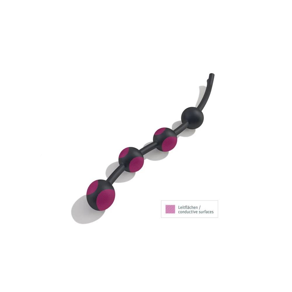 Booty Garland S, sunt bile anale realizate din silicon medicinal, compatibil cu sistemul de electrostimulare Mystim. Forma sa include 4 bile anale de 3.2 cm fiecare, care iti vor oferi senzatii absolute. Singur sau in cuplu, descopera placerile neasteptate ale acestor bile, care combina stimularea anala si electrostimularea, multumita compatibilitatii cu sistemele de electrostimulare Mystim. Jucaria in sine poate fi folosita si separat, fara optiunea de electrostimulare.