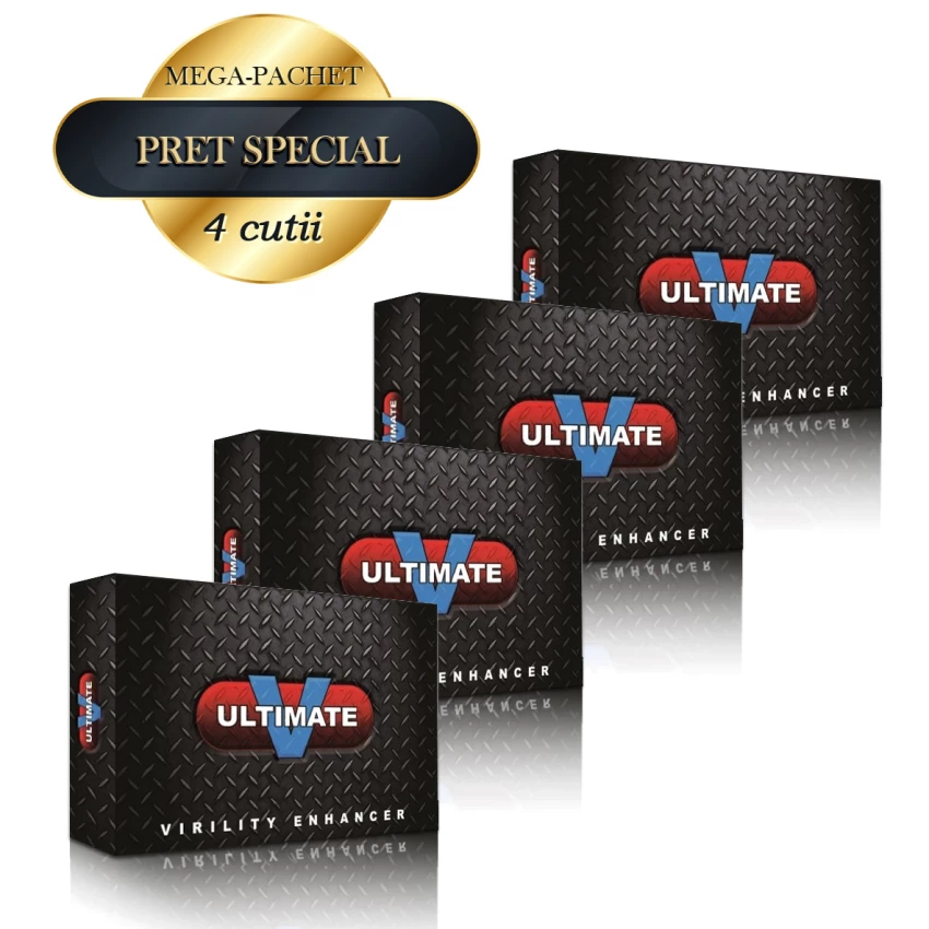 Pachet promotional ce contine 4 cutii de pilule pentru potenta Ultimate V 4. Acestea sunt un stimulent sexual pentru barbati, avand in compozitie extract de Maca dar si Tribulus Terrestris, 2 compusi naturali cu multiple beneficii pentru organism.