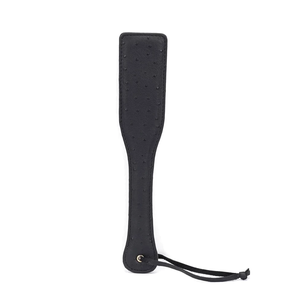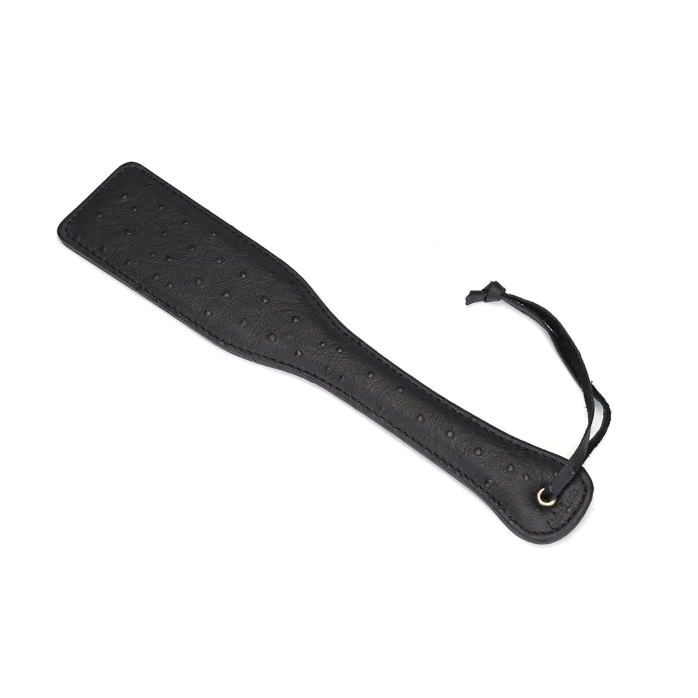 Padela confectionata din piele naturala, cu design elegant si practic, potrivita pentru jocurile fetish. La capat este prevazuta cu franghie pentru sustinere in timpul jocului sau pentru depozitare.