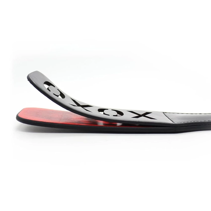 Este confectionata din material rezistent iar combinatia de rosu si negru ofera unicitate si rafinament accesoriului. Intregul ansamblu este suficient de dur si rezistent, fiind potrivit atat pentru incepatori cat si pentru cei avansati in jocurile de spanking.