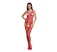 Catsuit cu design provocator confectionat din material eco cu aspect brodat, ce se muleaza perfect pe liniile corpului, evidentiind formele. Modelul decupat lasa la vedere zona intima, coapsele si fesele.
