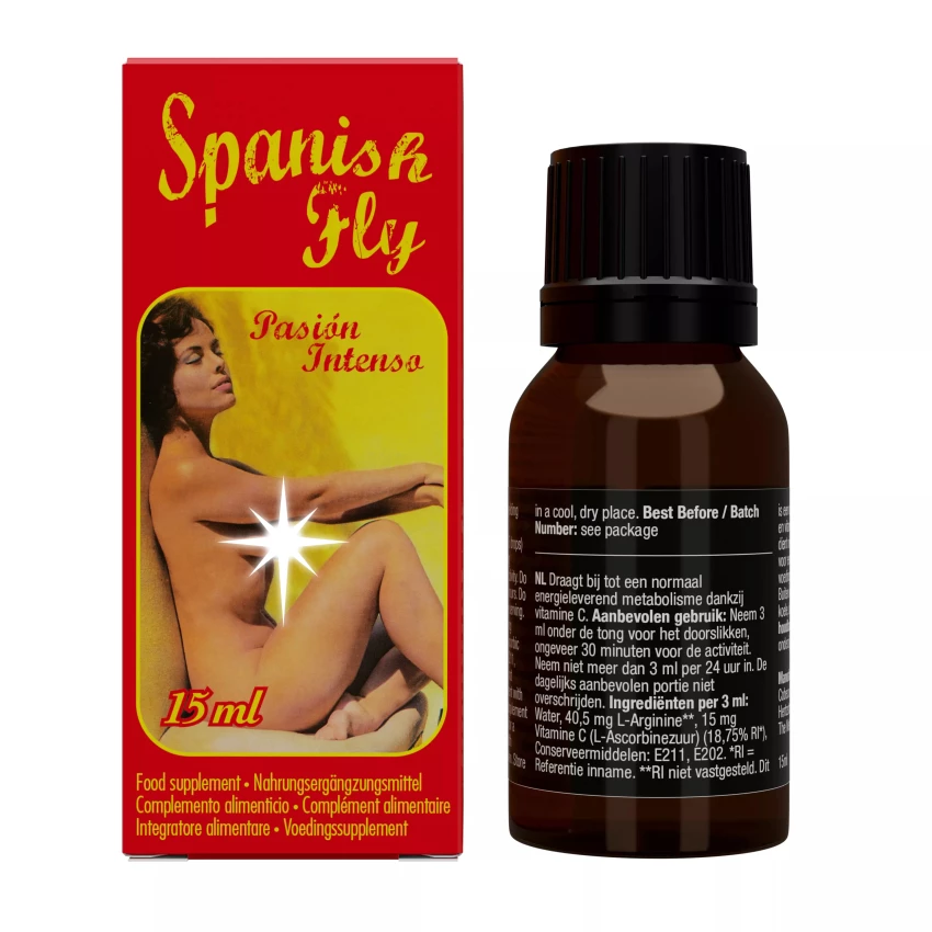 Spanish Fly Pasion Intenso sunt un supliment alimentar natural conceput pentru a spori dorinta sexuala dar si energia si starea generala de bine. Sunt realizate sub forma unor picaturi afrodisiace care se absorb rapid, oferind o crestere subtila dar totodata eficienta a libidoului feminin si masculin.