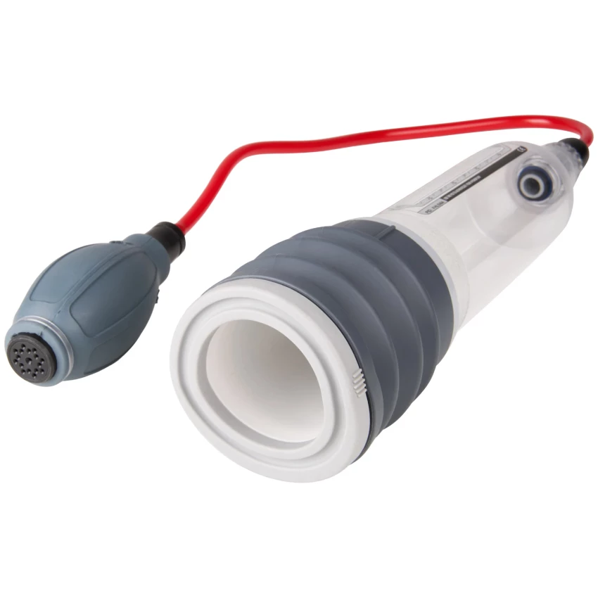 In varful articolului, este prezent sistemul simplu si intuitiv cu pompa manuala si furtun, facil de atasat si de folosit pentru oricine isi doreste performanta in activitatea sexuala.