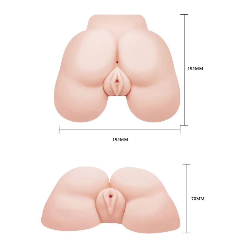 Masturbator cu doua orificii disponibile pentru penetrare: vagin si anus. Are aspect realistic si este confectionat dintr-un material care imita la atingere caracteristicile pielii umane.