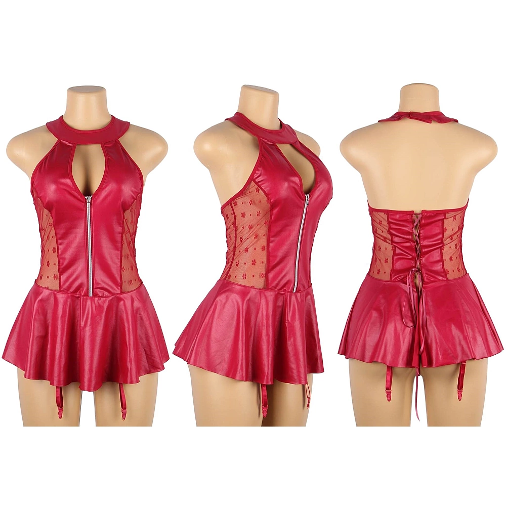 Rochita are prindere pe dupa gat si dispune de fermoar argintiu aplicat frontal din zona bustului pana la talie. Pentru un plus de senzualitate si versatilitate, la spate articolul este prevazut cu o despicatura incitanta.