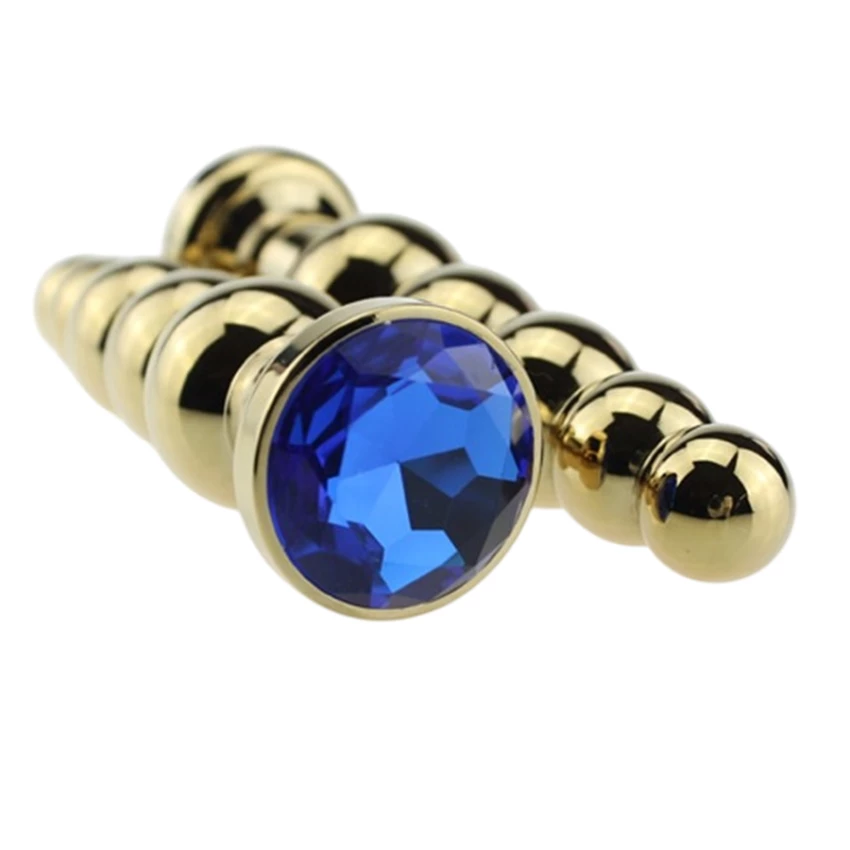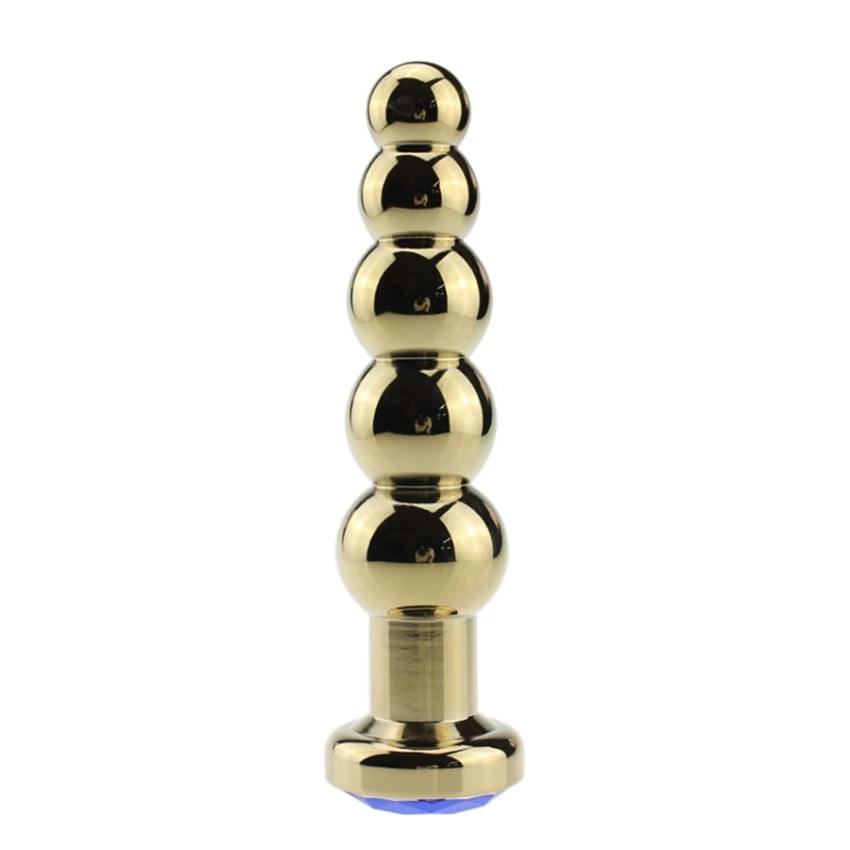 Dildo anal cu design care imita un sirag de bile cu diametre diferite. Dispune de baza circulara decorata cu piatra, si are o greutate de 217g.