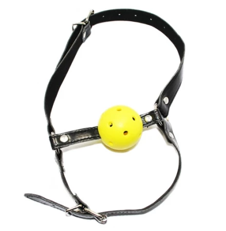Calus de culoare galbena, cu orificiii, inserat intr-un cadru din imitatie de piele, cu capse, prevazut cu catarama, pentru ajustarea marimii