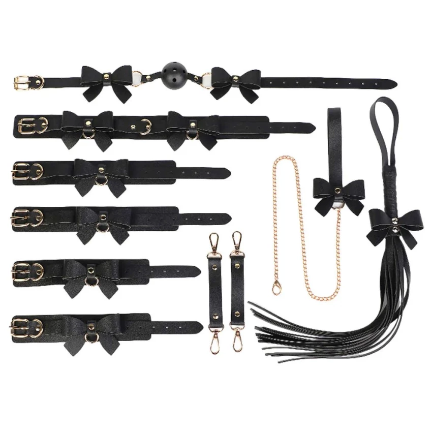 Kitul include multiple accesorii cum ar fi catuse pentru incheietura mainii dar si pentru glezne, calus, bici si zgarda cu lesa. Acestea dispun de inchidere pe baza de catarame, ceea ce permite ajustarea in functie de circumferinta fiecarei zone pe care urmeaza a fi aplicate.