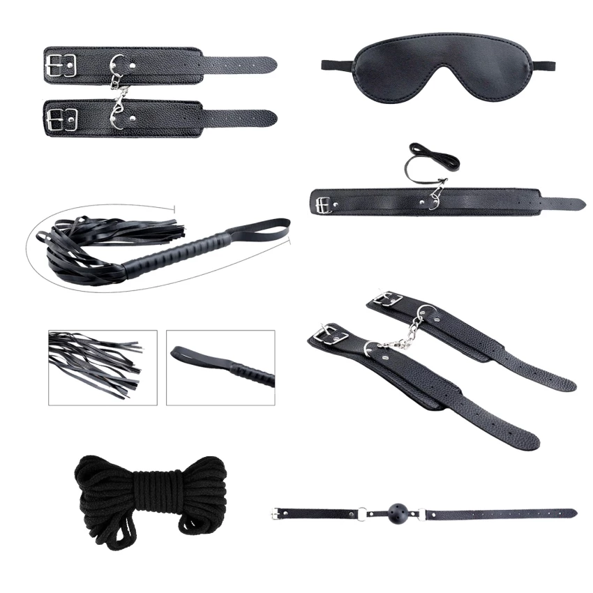 Set complex format din 8 accesorii de notorietate din categoria fetish si BDSM, realizate din materiale de inalta calitate ce se simt extrem de placut in contact cu pielea. Materialul este unul placut la atingere ce se aseamana cu pielea ecologica.