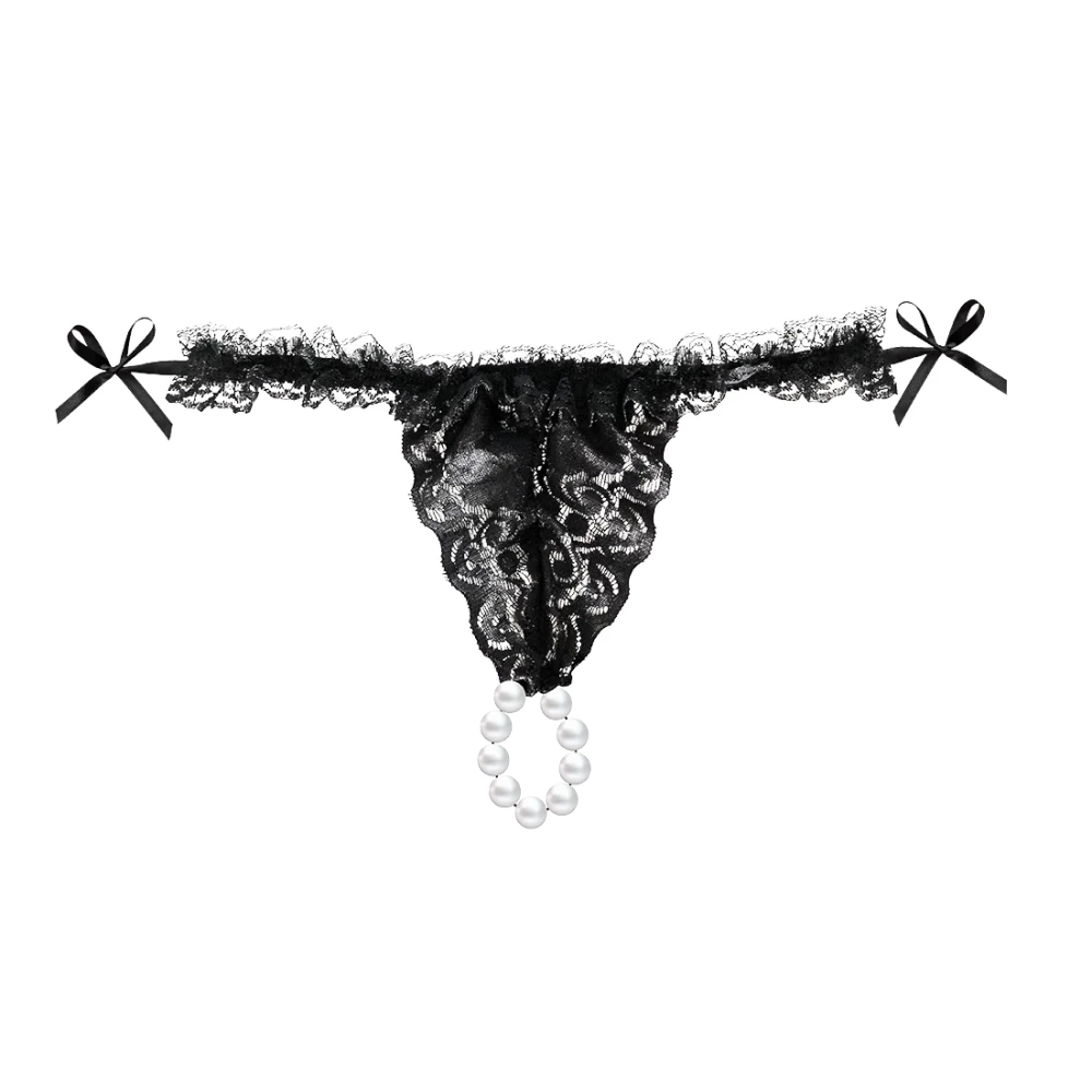 Slipul este confectionat din dantela delicata si este prevazut pe laterale cu snururi subtiri, pentru a putea fi ajustat dupa marimea dorita. Siragul de perle din zona intima are rol de stimulare, masand clitorisul si penisul in timpul penetrarii.
