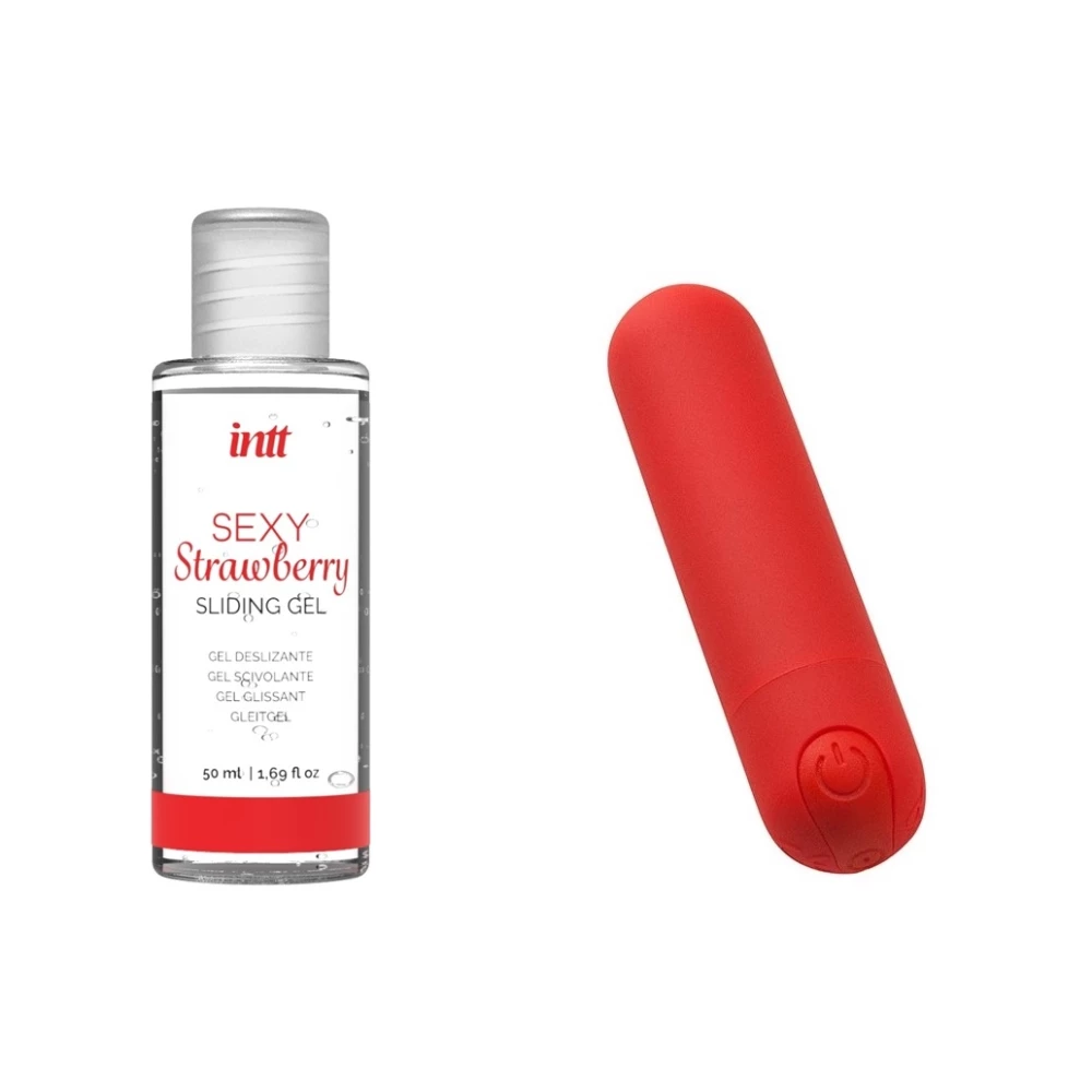 Set format dintr-un mini glont vibrator din silicon si un lubrifiant pe baza de apa.