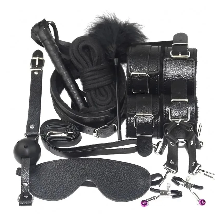 Va prezentam un set bondage complex format din 10 componente, realizate din materiale de inalta calitate ce se simt extrem de placut in contact cu pielea. Ansamblul este perfect atat pentru cei incepatori in jocurile de tip dominare/supunere, cat si pentru cei mai experimentati, care doresc sa adauge accesorii fetish noi la colectia deja existenta.