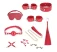 Kitul include multiple articole cum ar fi catuse pentru incheietura mainii dar si pentru glezne, calus, masca si zgarda cu lesa. Acestea dispun de inchidere pe baza de catarame, ceea ce permite ajustarea functie de circumferinta fiecarei zone pe care urmeaza a fi aplicate.