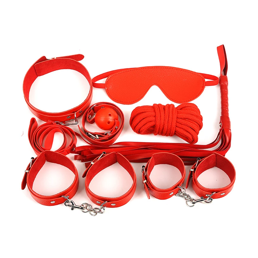 Set complet format din 7 accesorii definitorii din categoria fetish si BDSM, ideale pentru cuplurile care doresc sa adauge un strop de noutate si inovatie in viata lor intima. Nuanta de rosu ofera un aspect romantic intregului ansamblu, captivand atentia si sporind curiozitatea.