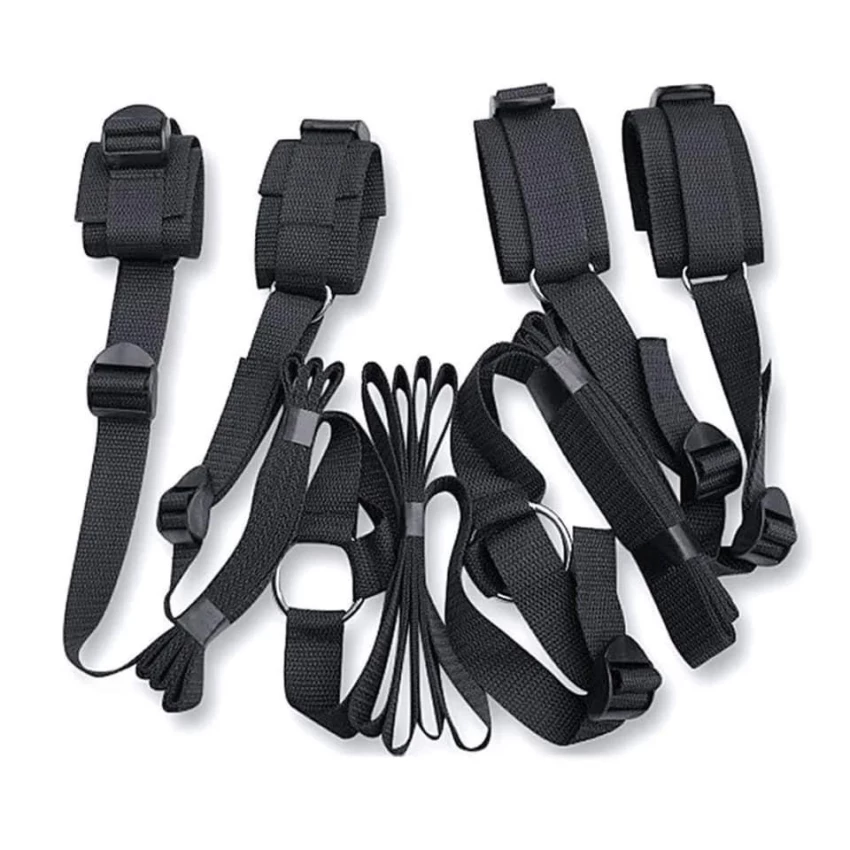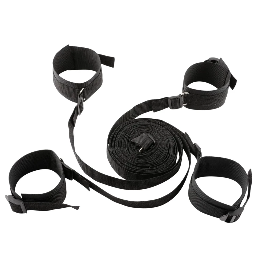 Set fetish pentru imobilizarea simultana a membrelor superioare si a celor inferioare, realizat intr-un design versatil, elegant si rafinat. Contine un numar de 3 accesorii ce se pot atasa si ulterior desprinde cu usurinta unele de altele, special concepute pentru a fi prinse pe dedesubtul saltelei sau dedesubtul unui pat clasic.