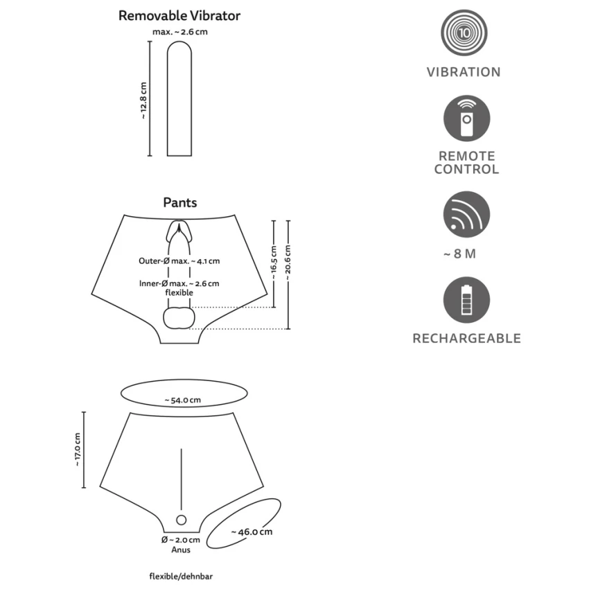 Slip cu vibrator din silicon lichid inclus, potrivit atat pentru femei cat si pentru barbati, ce ofera un plus de volum al zonei intime, aplicat pe dedesubtul articolelor clasice de imbracaminte. Se poate purta ca atare in locul lenjeriei intime sau pe sub aceasta, depinde cum se doreste.