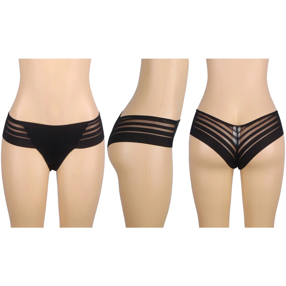 Sunt realizati cu un mod geometric asemanator unor linii oblice dispuse una sub alta, model care pleaca din laterale si se continua pana la spate. O parte dintre acestea sunt realizate din materialul clasic care acopera implicit si zona intima iar o parte sunt realizate din tul semi-transparent.
