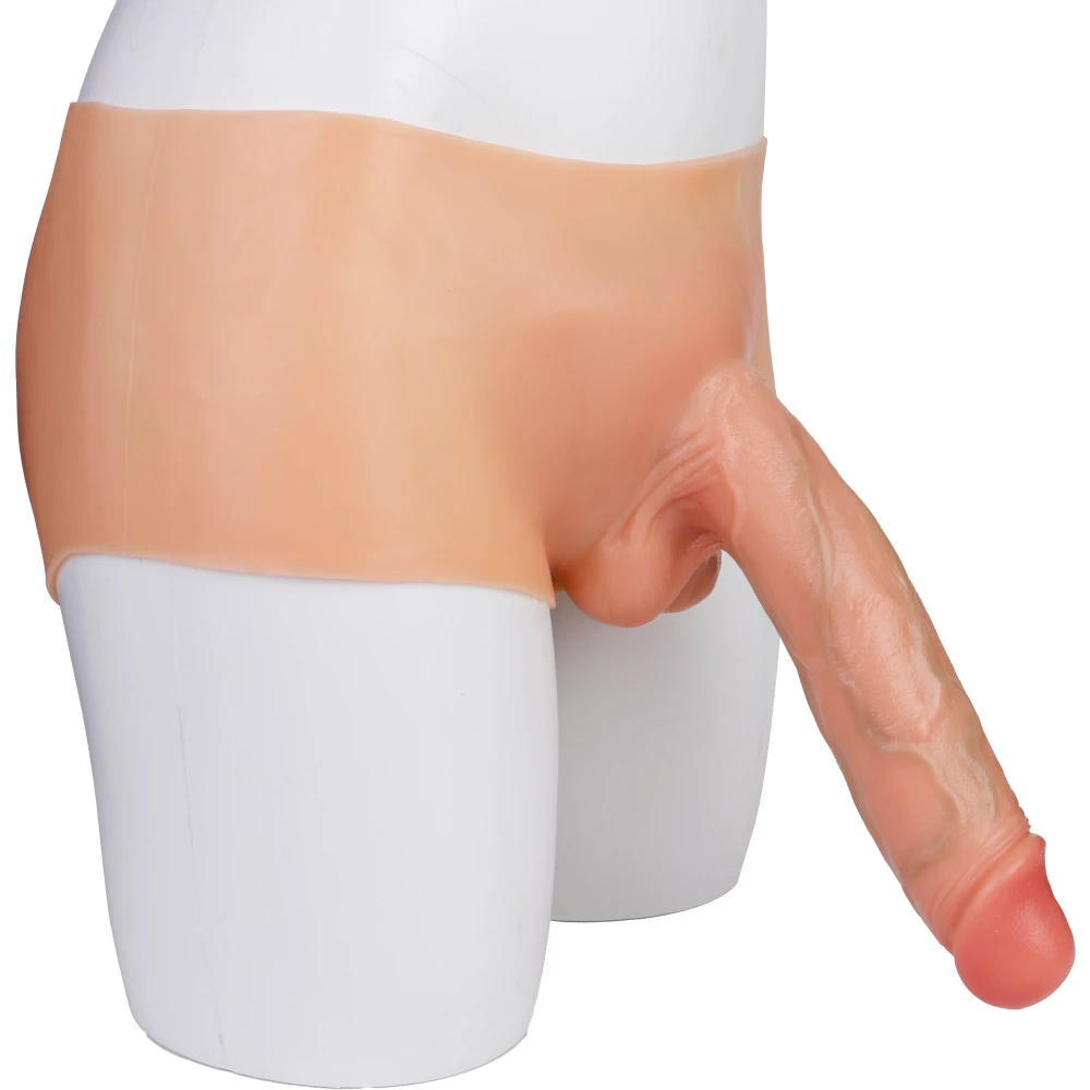 Slip cu dildo din silicon inclus, potrivit atat pentru femei cat si pentru barbati, ce ofera un plus de volum al zonei intime, aplicat pe dedesubtul articolelor clasice de imbracaminte. Se poate purta ca atare in locul lenjeriei intime sau pe sub aceasta, depinde cum se doreste. Dildo-ul este extrem de moale si placut la atingere si este prevazut cu vene bine evidentiate pentru un aspect cat mai realistic.