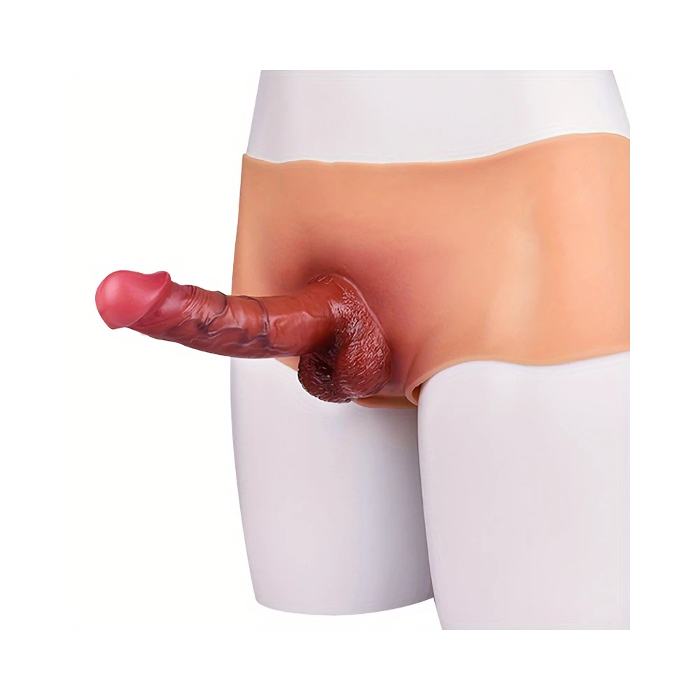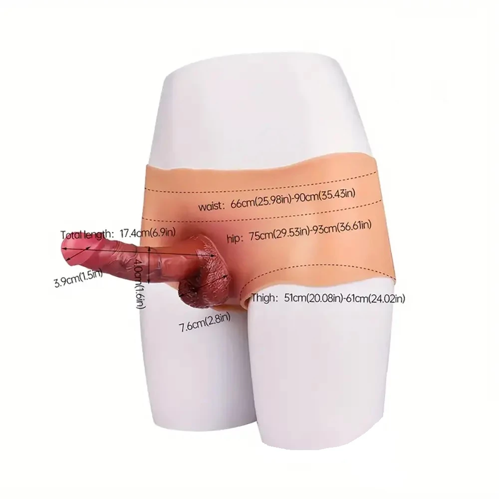 Slip cu dildo din silicon inclus, potrivit atat pentru femei cat si pentru barbati, ce ofera un plus de volum al zonei intime, aplicat pe dedesubtul articolelor clasice de imbracaminte. Se poate purta ca atare in locul lenjeriei intime sau pe sub aceasta, depinde cum se doreste. Dildo-ul este extrem de moale si placut la atingere si este prevazut cu testicule si vene bine reliefate pentru un aspect cat mai realistic.