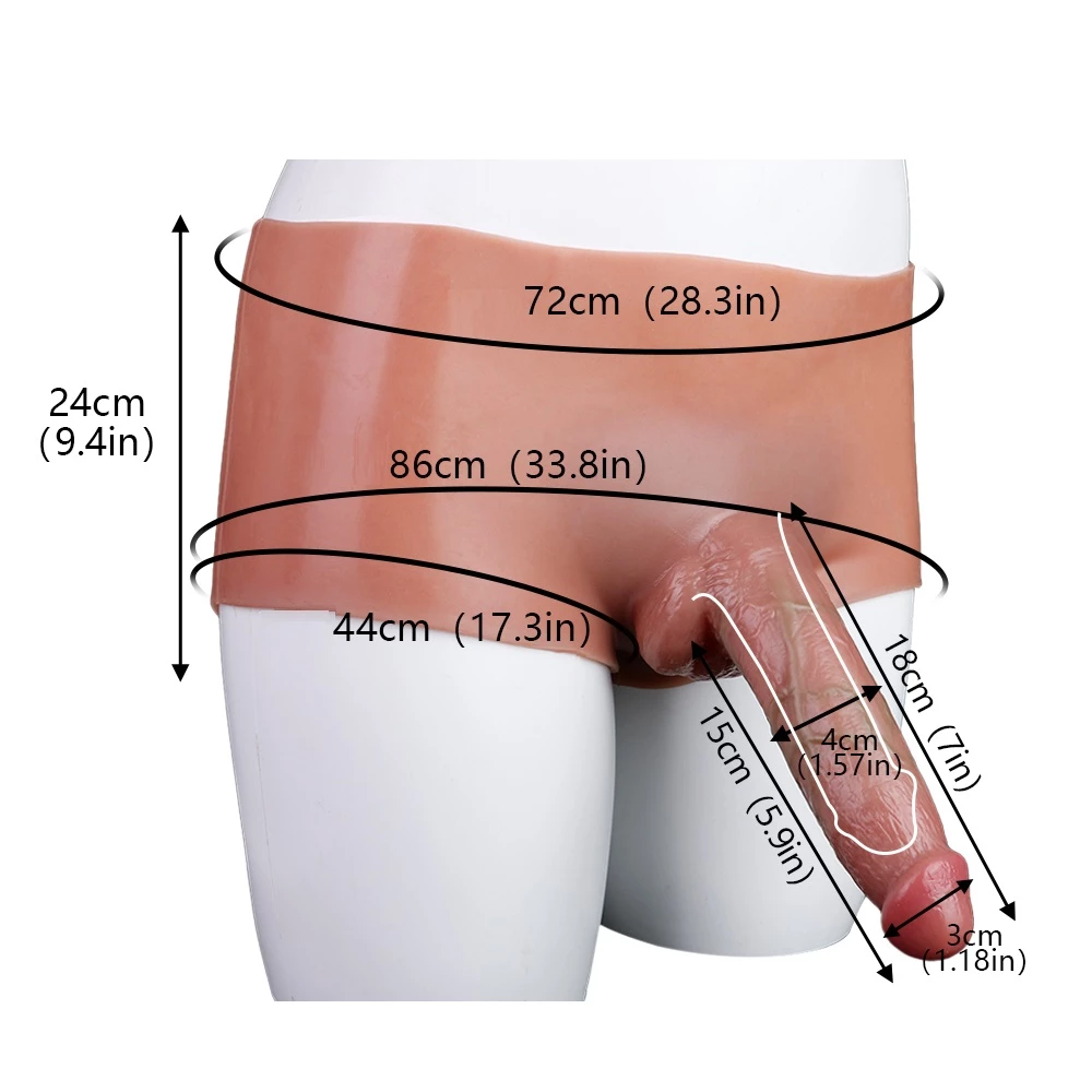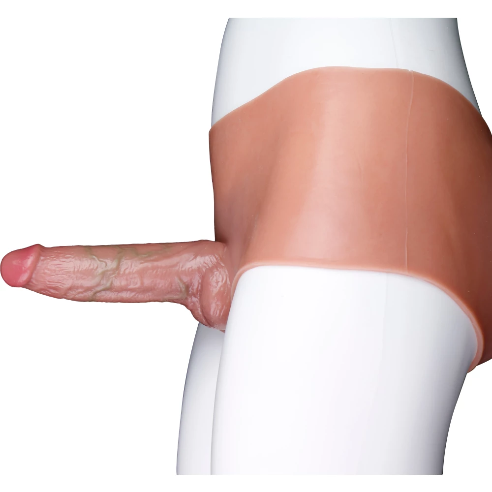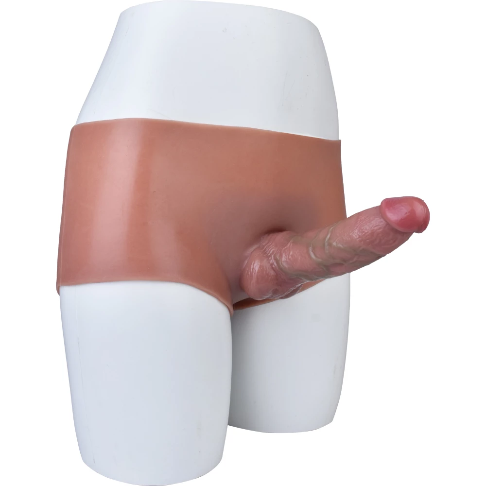 Slip cu dildo din silicon inclus, potrivit atat pentru femei cat si pentru barbati, ce ofera un plus de volum al zonei intime, aplicat pe dedesubtul articolelor clasice de imbracaminte. Se poate purta ca atare in locul lenjeriei intime sau pe sub aceasta, depinde cum se doreste. Dildo-ul este extrem de moale si placut la atingere si este prevazut cu testicule si vene bine reliefate pentru un aspect cat mai realistic.