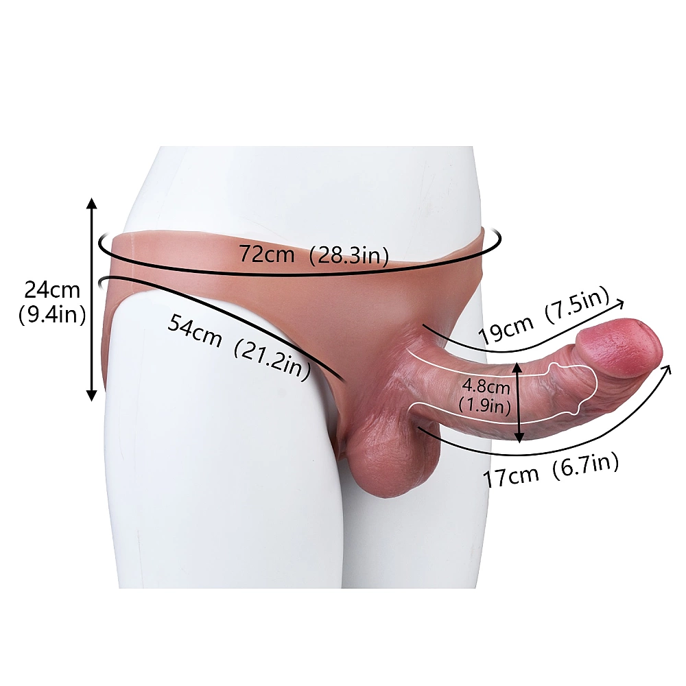 Slip cu dildo din silicon inclus, potrivit atat pentru femei cat si pentru barbati, ce ofera un plus de volum al zonei intime. Se poate purta ca atare in locul lenjeriei intime sau pe sub aceasta, depinde cum se doreste. Dildo-ul este extrem de moale si placut la atingere si este prevazut cu testicule si vene bine reliefate pentru un aspect cat mai realistic. Totodata, forma curbata ajuta la stimularea punctului G.