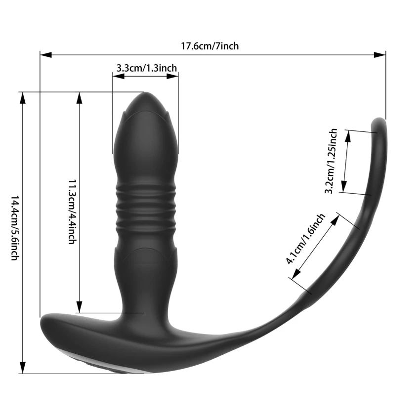 Stimulator pentru prostata cu functii multiple si inel dublu, confectionat din silicon extrem de fin si placut la atingere ce se simte foarte bine in contact cu pielea umana.