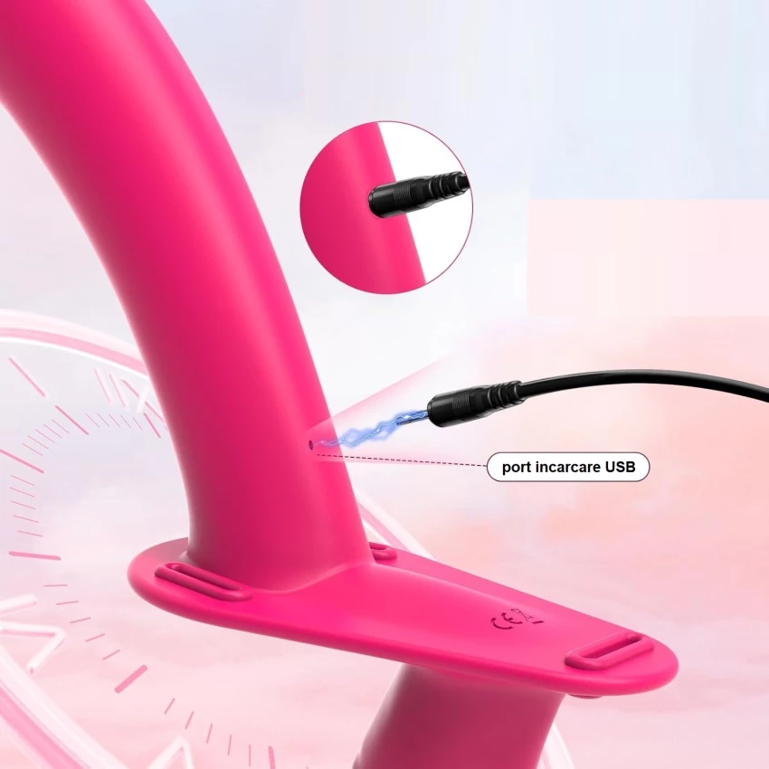 Strap-on cu vibratii potrivit pentru jocurile de cuplu, prevazut cu design elegant si nuanta atragatoare de roz intens (magenta). Modelul se poarta ca atare, sporind placerea ambilor parteneri si este potrivit pentru o circumferinta a taliei de pana la 112 cm.