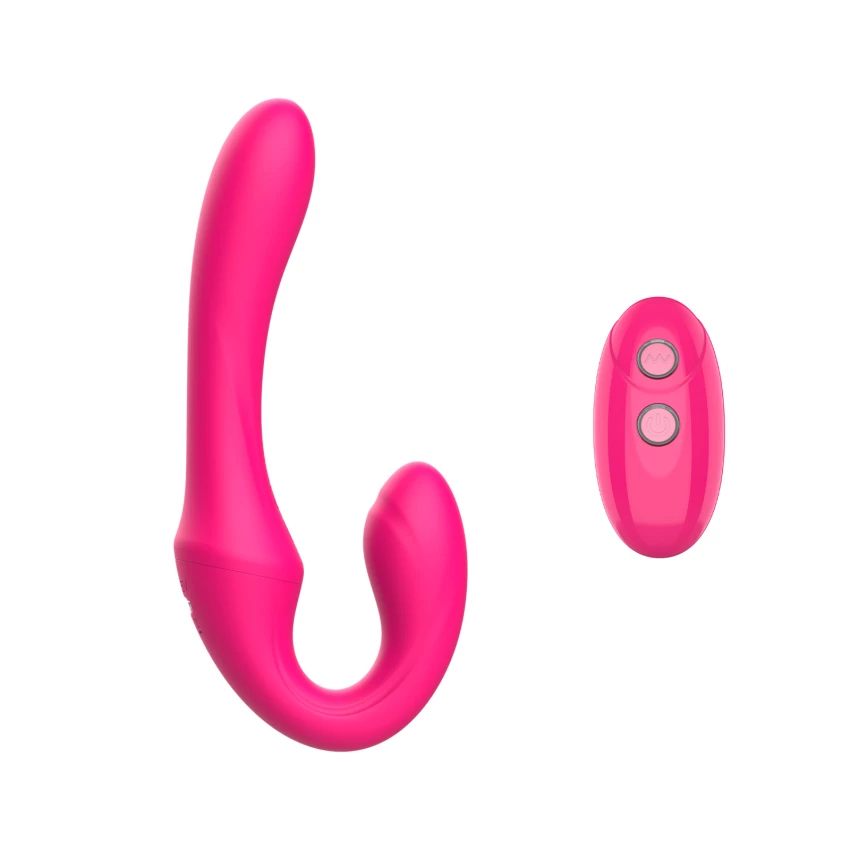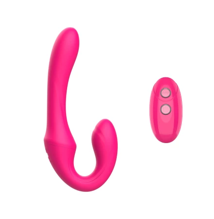Strap-on cu vibratii fara hamuri potrivit pentru jocurile de cuplu, prevazut cu design elegant si nuanta atragatoare de roz romantic. Modelul nu dispune de centuri, astfel ca se poarta ca atare, sporind placerea ambilor parteneri prin faptul ca o parte s-ar folosi vaginal si cealalta parte pentru penetrarea partenerului.