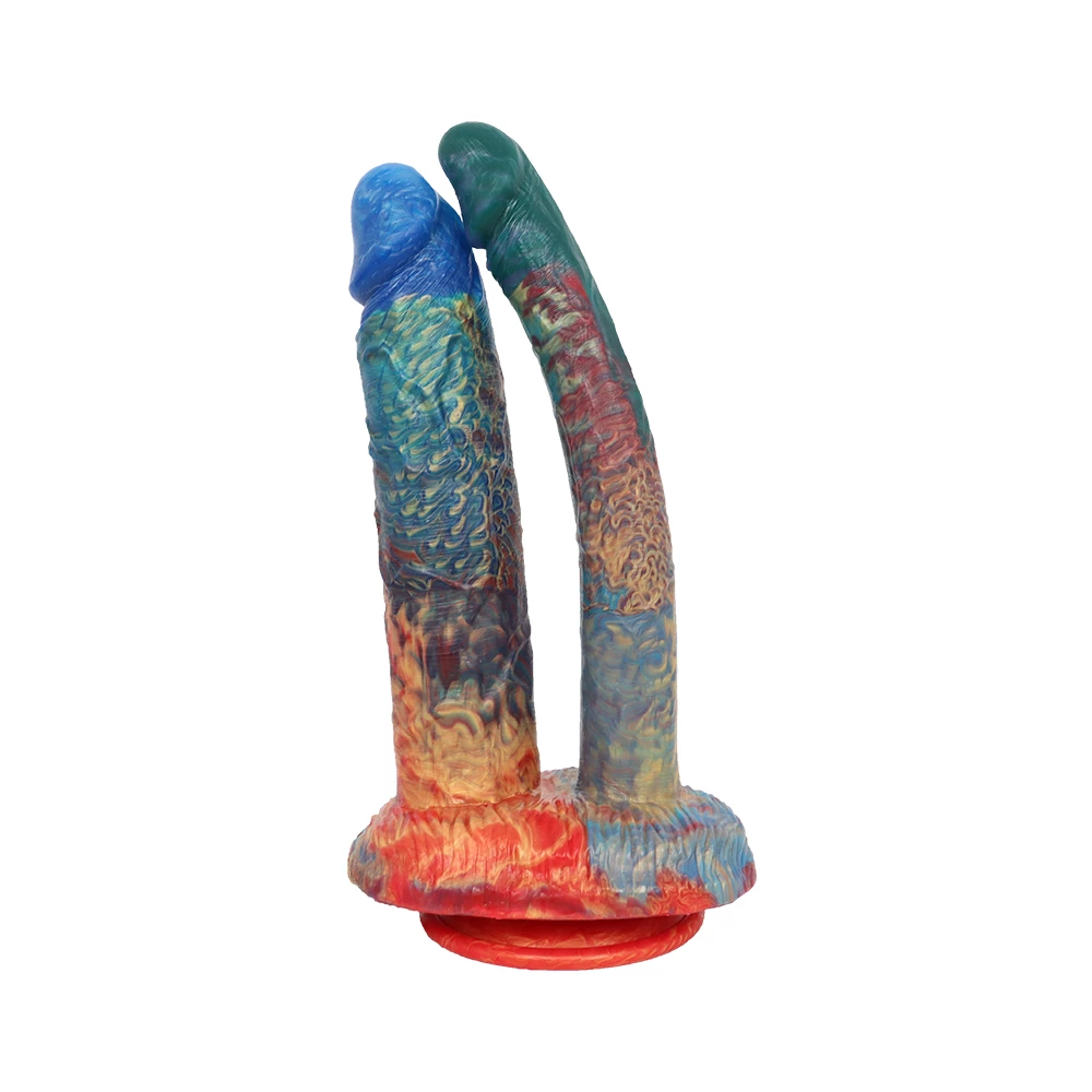 Dildo confectionat din silicon lichid, cu design special. Extrem de flexibil, intr-o combinatie unica de culori vibrante, dildo-ul completeaza perfect colectia ta de jucarii erotice.