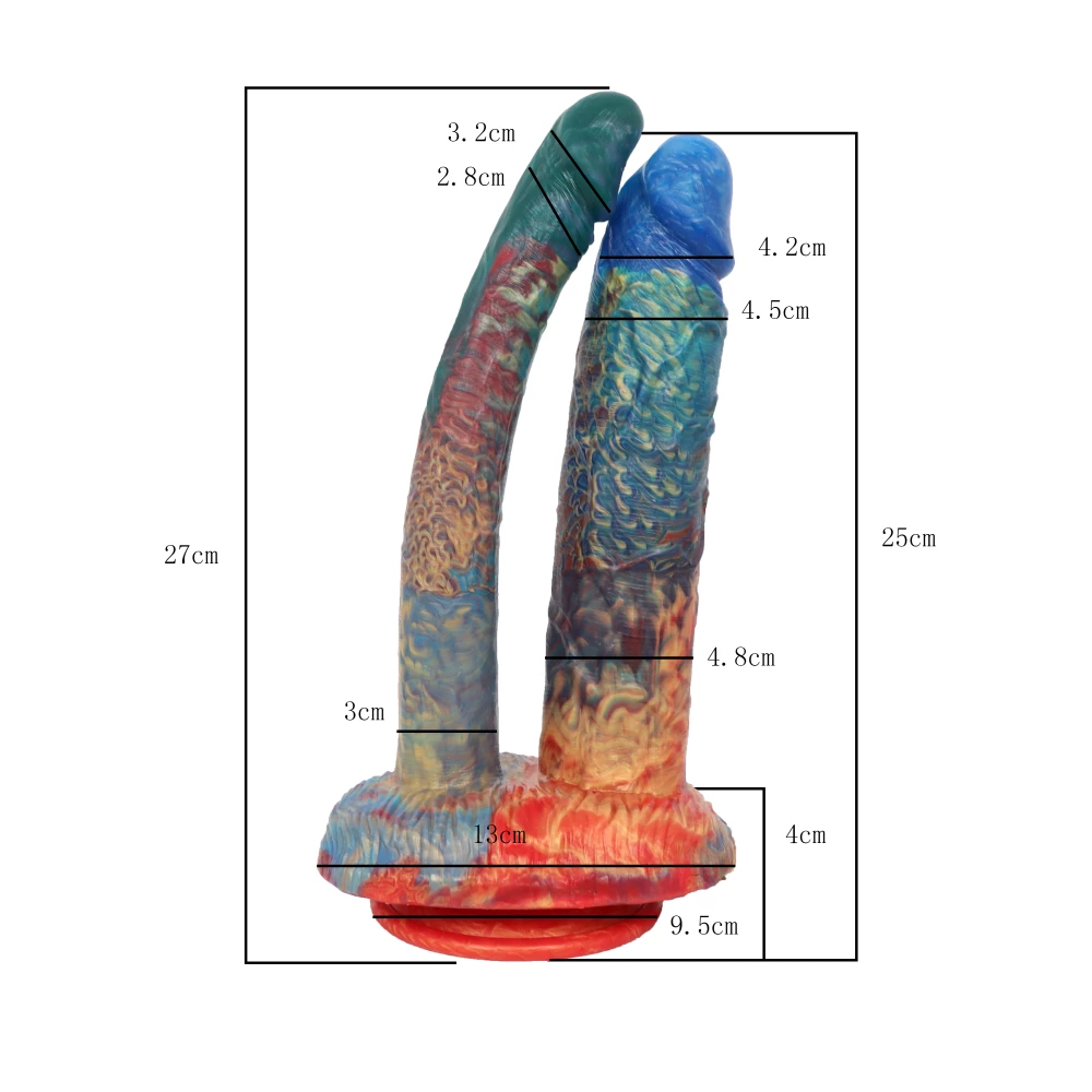 Ambele extremitati ale dildo-ului sunt disponibile pentru stimulare si au varfurile in forma de gland. Dimensiunile si suprafata texturata a fiecarei extremitati este diferita. Baza dispune de o cupa de suctiune puternica pentru a fixa dildo-ul pe suprafetele plane.