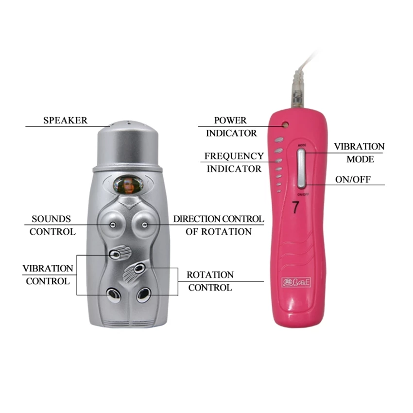 Masturbator cu vibratii, fabricat din material de inalta calitate, testat dermatologic, hipoalergenic. Acesta este prevazut cu vagin si anus. Are aspect realistic si se controleaza prin telecomenezile cu care vine insotit. Jucaria este prevazuta cu 7 trepe de vibratii puternice, diferite in intensitate, dar si cu sunete.