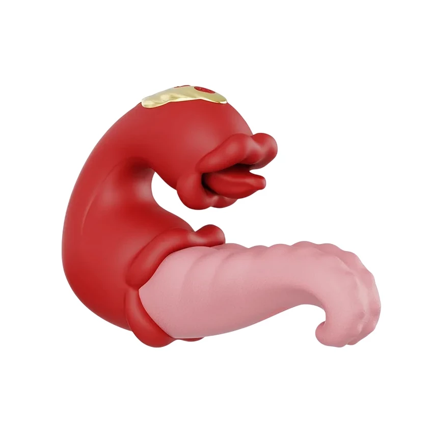 Jucarie erotica cu aspect atractiv, realizata intr-o culoare intensa de rosu romantic, intr-un design ce imita o stimulare orala. Mai exact, vibratorul este format din 2 parti, una similara unei limbi, iar cea de-a doua asemanatoare unei cavitati orale cu buze si limba.