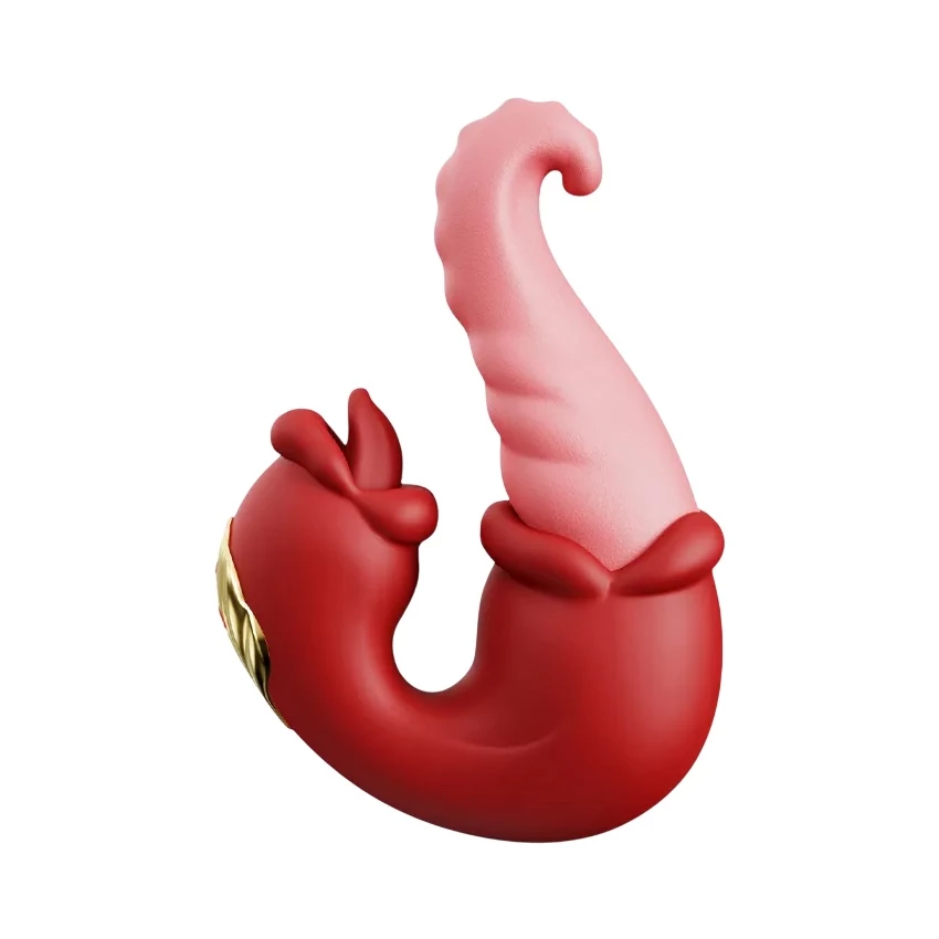 Vibrator 3 in 1 Double Tongue Rosu