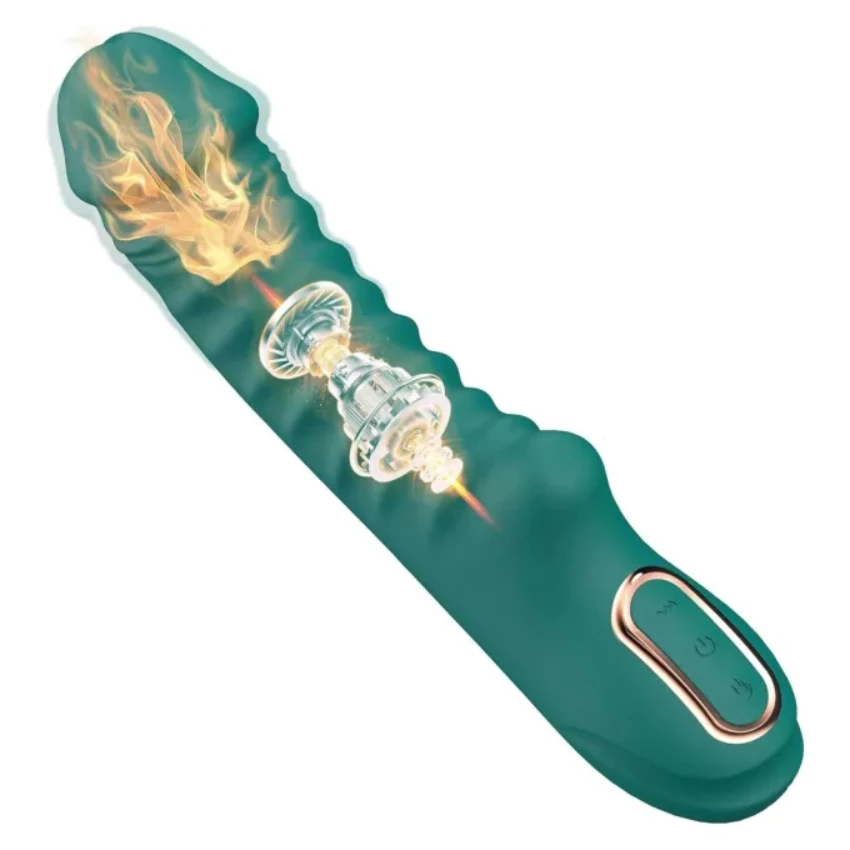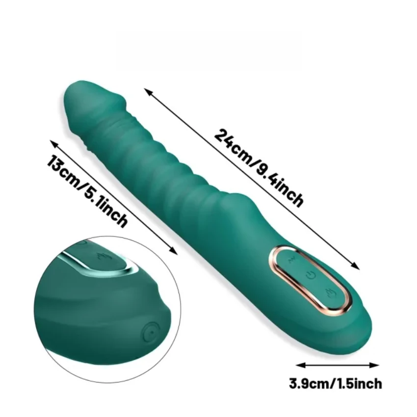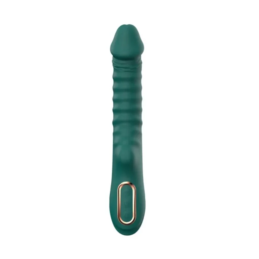 Vibrator clasic de culoare verde, creat intr-un design elegant si atractiv, cu striatii canelate bine reliefate si varf evidentiat. Pentru o experienta cat mai naturala, dispune de functie de incalzire, oferind astfel o placere multipla si o satisfactie sporita.